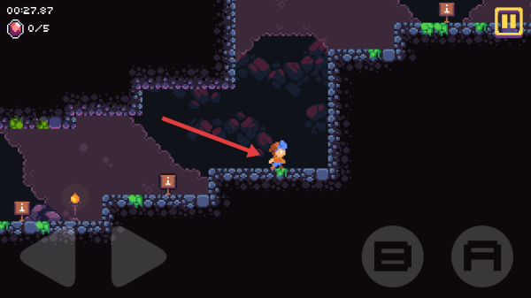 2、用虛擬按鍵操控角色移動(dòng)跳躍,避開溝壑障礙,收集場(chǎng)景寶石關(guān)注0/5進(jìn)度推進(jìn)關(guān)卡。