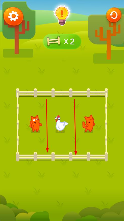 3、成功將所有小雞解救并送達(dá)終點(diǎn)即可通關(guān),隨著關(guān)卡推進(jìn),狐貍數(shù)量和移動(dòng)速度增加,需更謹(jǐn)慎地規(guī)劃行動(dòng)。