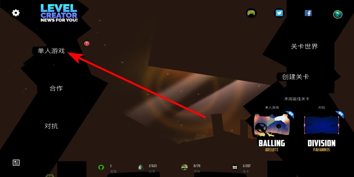 1、點擊開始游玩,進入游戲界面后,找到并點擊單人游戲選項,仔細瀏覽界面信息,隨后選擇對應(yīng)關(guān)卡,開啟充滿未知的冒險體驗征程。