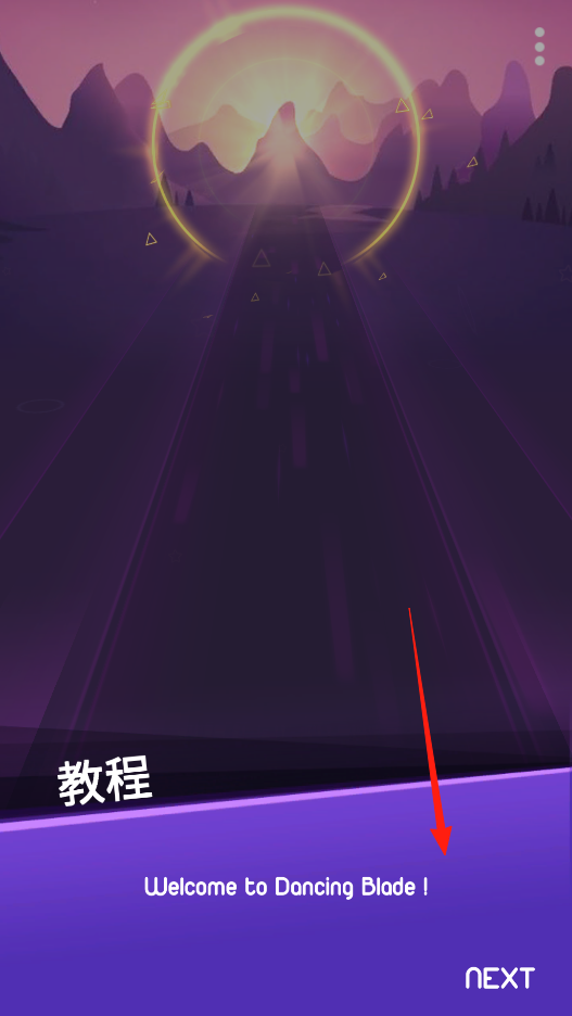1、進入跳舞刀片,看到Welcome to Dancing Blade和教程提示,想了解怎么玩點右下角NEXT,跟著教程一步步學操作,開啟音樂跑酷之旅。
