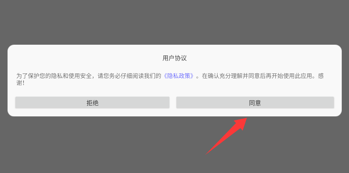 1、點(diǎn)擊用戶協(xié)議里的同意并進(jìn)入。