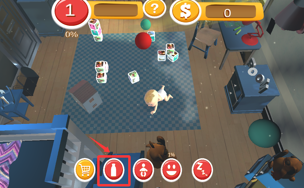 3、點(diǎn)擊紅色框框里的奶瓶給他喝奶。