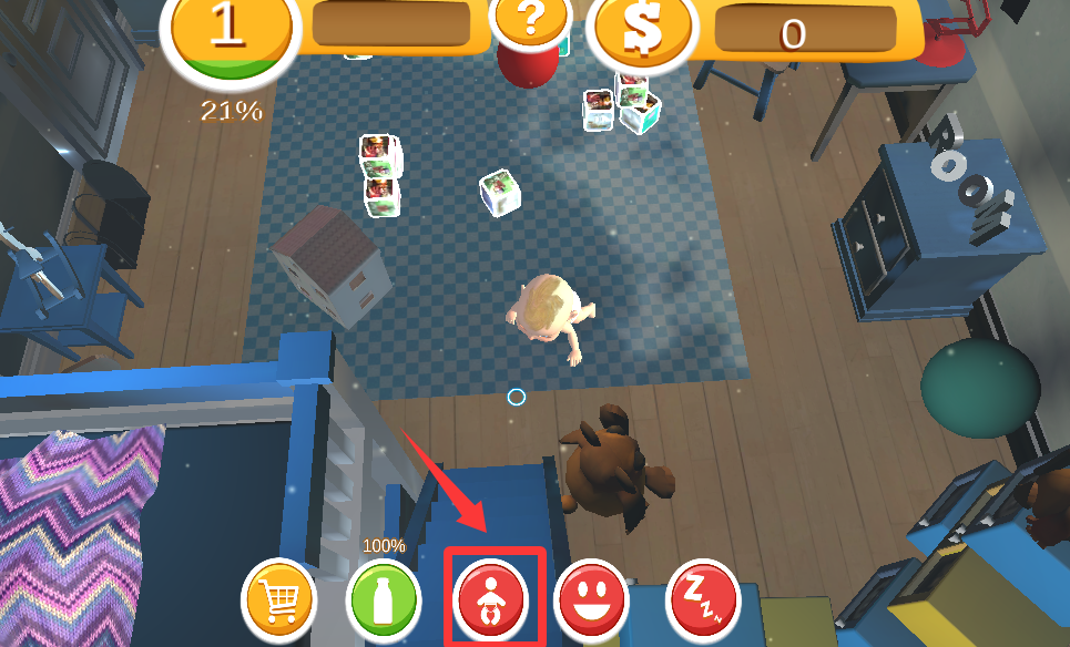 3、裝飾系統(tǒng)支持個(gè)性化布置,50+種家具和墻紙可自由搭配,不同風(fēng)格的嬰兒房會(huì)激發(fā)寶寶不同的探索行為,增添游戲趣味性。