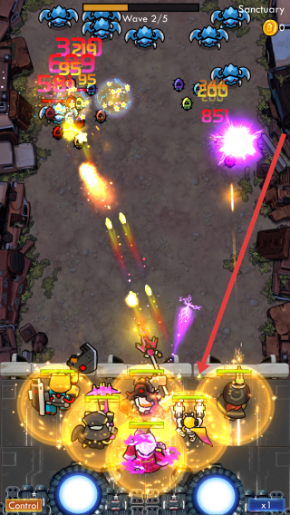 1、戰(zhàn)斗中點(diǎn)擊左側(cè)怪物,觸發(fā)防御塔集火機(jī)制,集中火力快速消滅該目標(biāo),推進(jìn)Wave1的戰(zhàn)斗進(jìn)程。