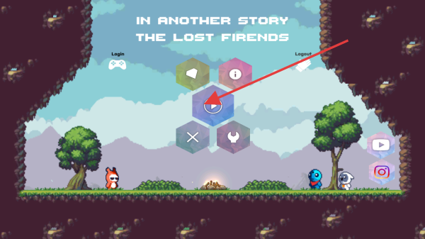 1、進(jìn)入游戲主界面,點(diǎn)擊帶有播放圖標(biāo)的按鈕,開始IN ANOTHER STORY THE LOST FIRENDS游戲旅程。