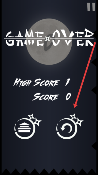 3、游戲結(jié)束后,點擊右側(cè)重玩按鈕,重新挑戰(zhàn)Dark-Ninja,嘗試突破當(dāng)前分?jǐn)?shù),提升忍者跳躍生存的時長。