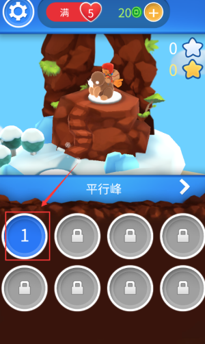 3、選擇紅框數(shù)字1關(guān)卡,開始平行峰第一關(guān)挑戰(zhàn)。