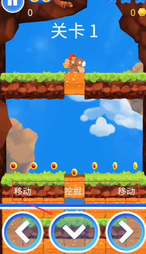 4、點(diǎn)擊紅框移動(dòng)按鈕,控制小熊左右移動(dòng)挖掘。