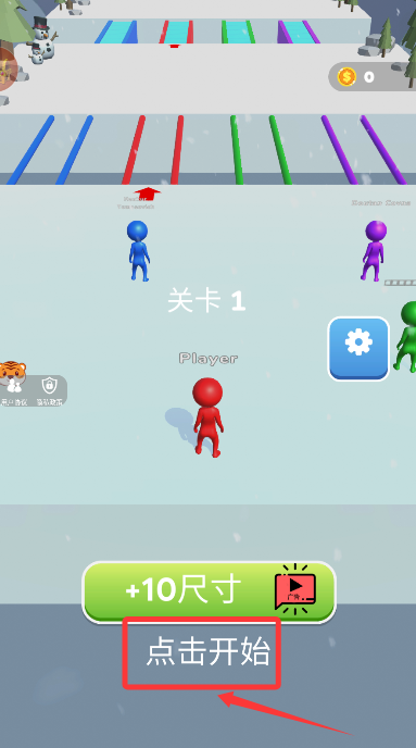 1、進(jìn)入第一關(guān)后,點(diǎn)擊"開始游戲"按鈕,控制紅色角色啟動(dòng)挑戰(zhàn)。