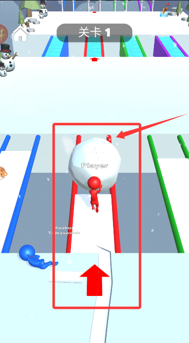 2、操作角色推動(dòng)雪球前進(jìn),在移動(dòng)過程中使雪球體積逐漸增大。
