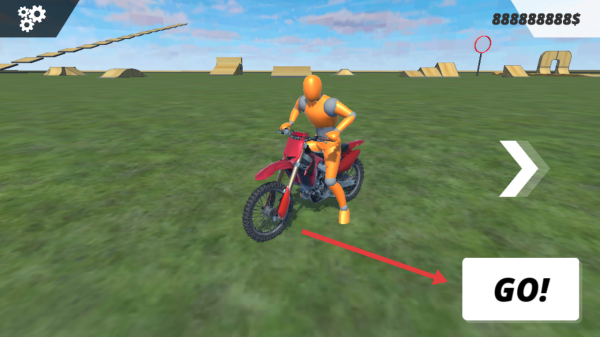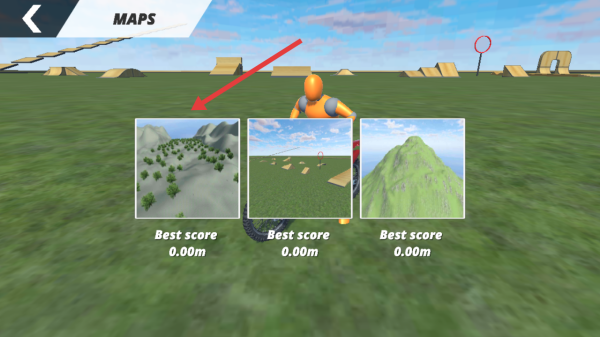 1、在初始場(chǎng)景,點(diǎn)擊GO,進(jìn)入地圖選擇頁(yè),選首張山地場(chǎng)景Best score0.00m開啟摩托挑戰(zhàn)。