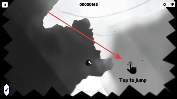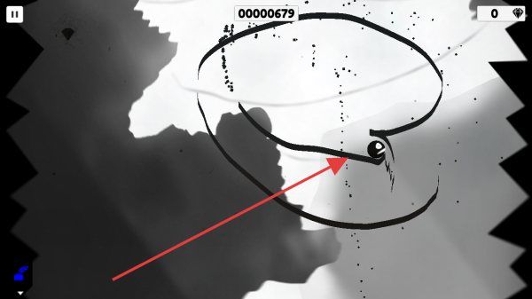 3、繪制路徑如箭頭指向的線條引導小球,利用跳躍功能,在黑白場景中闖關,完成經(jīng)典關卡。