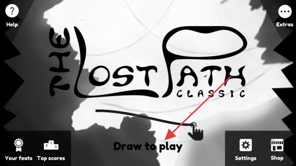 1、打開Wick Lost Path Classic游戲,在主界面Draw to play處繪制,開啟黑白風格冒險。