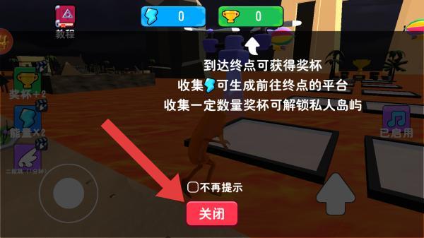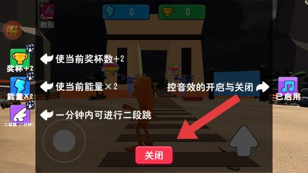 2、顯示當前獎杯數(shù)量+2、一分鐘可以進行二段跳,點擊右下角的跳躍按鈕,確保在跳躍過程中可以順利調(diào)整落點位置。