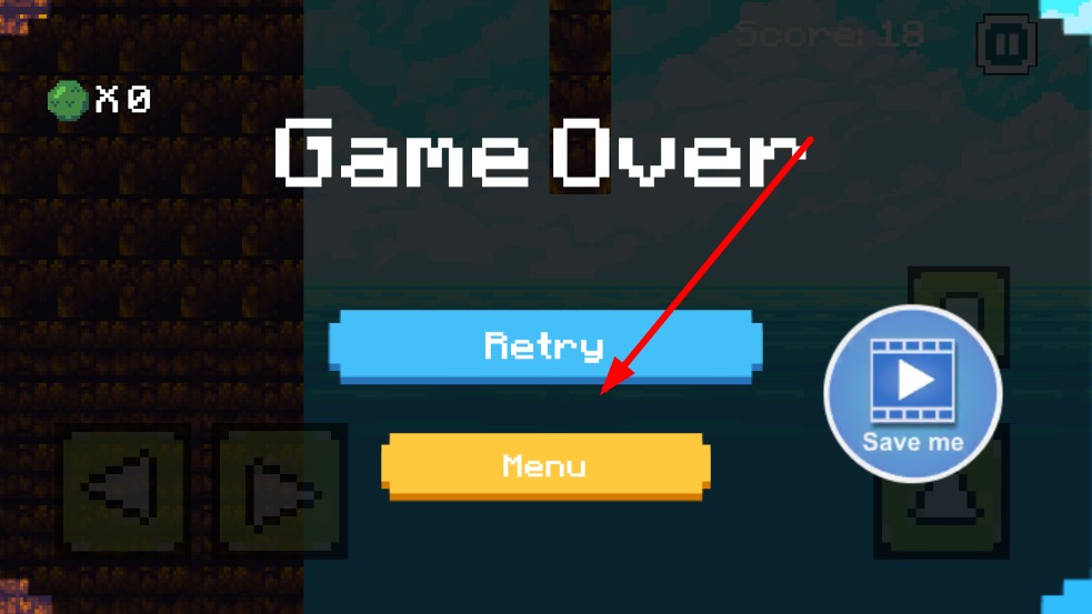 3、生命耗盡或墜落觸“Game Over,點擊Retry重玩本關(guān),Menu返回選單;通關(guān)解鎖后續(xù)關(guān)卡,開啟新的挑戰(zhàn)。