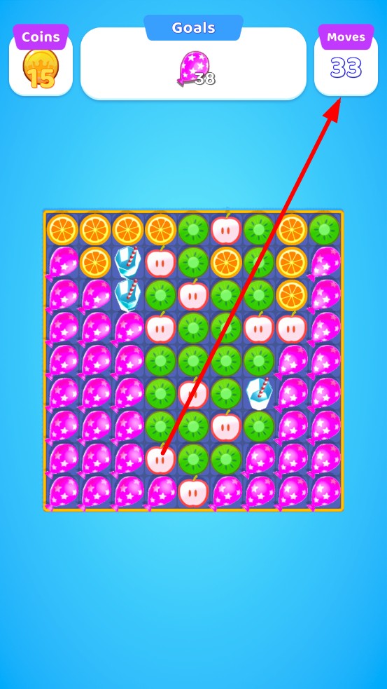 2、注意右上角的步數(shù)剩余和上方的通關(guān)要求,在步數(shù)結(jié)束前,收集到足夠多的氣球。