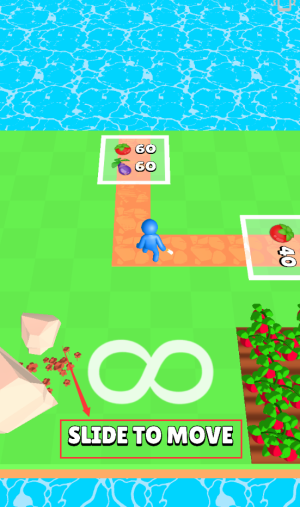1、滑動紅框SLIDE TO MOVE區(qū)域,控制藍(lán)色小人移動。