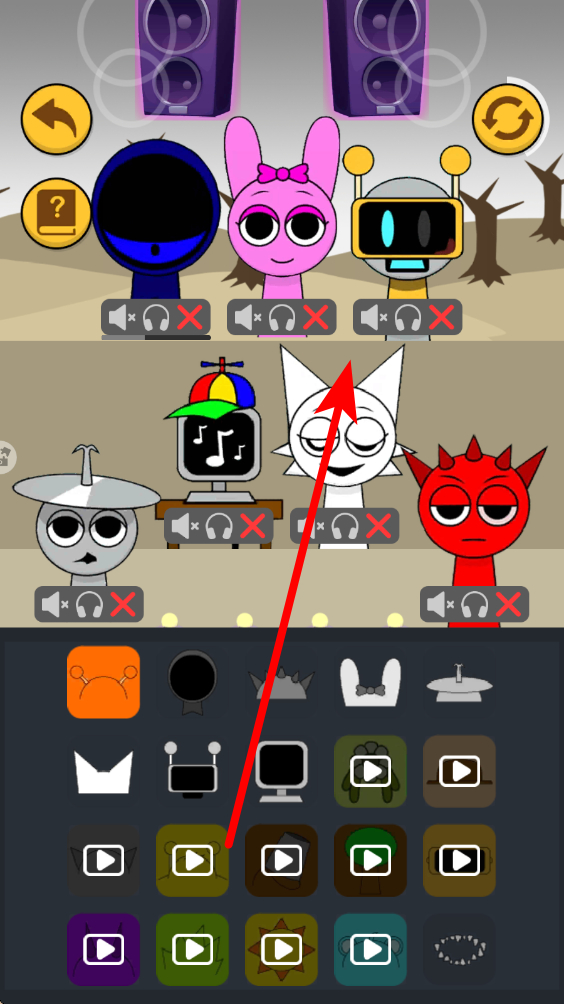 2、選定模式后進(jìn)入場(chǎng)景,觀察界面角色與下方音效圖標(biāo),點(diǎn)擊角色開(kāi)啟或關(guān)閉音效,搭配不同功能圖標(biāo),多次嘗試組合出獨(dú)特節(jié)奏旋律。