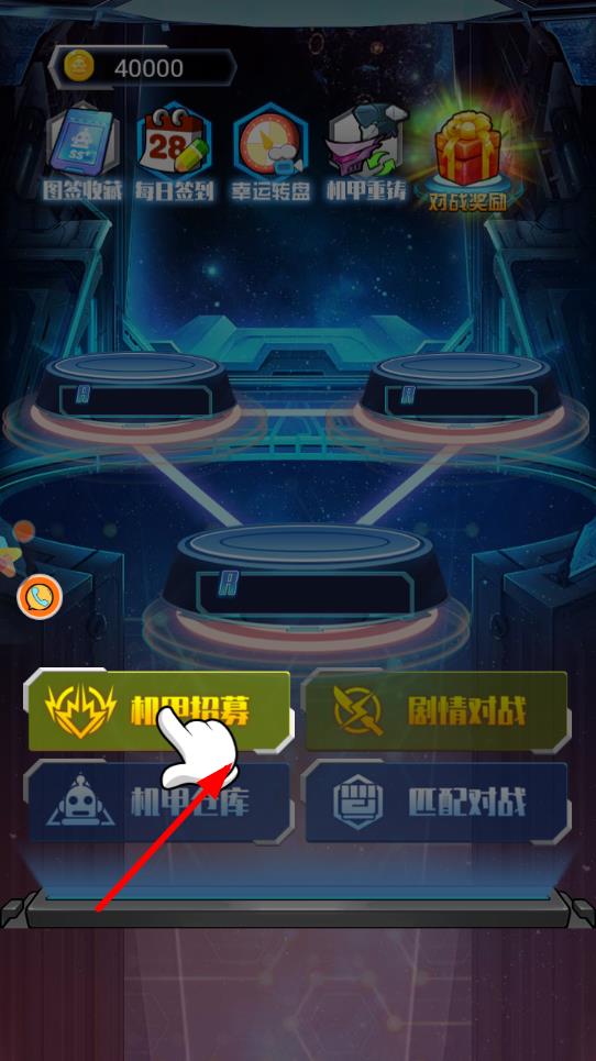 1、進入游戲后,在機甲庫中挑選心儀的初始機甲,查看其屬性與技能,根據(jù)戰(zhàn)斗需求配備基礎(chǔ)武器,做好戰(zhàn)斗準(zhǔn)備。