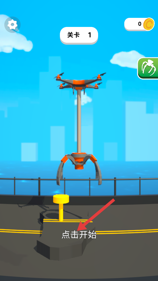 1、進入游戲后選擇目標(biāo)城市與對應(yīng)建筑任務(wù),操控?zé)o人機移動到建筑物體旁,點擊屏幕讓無人機抓取首個建造部件。