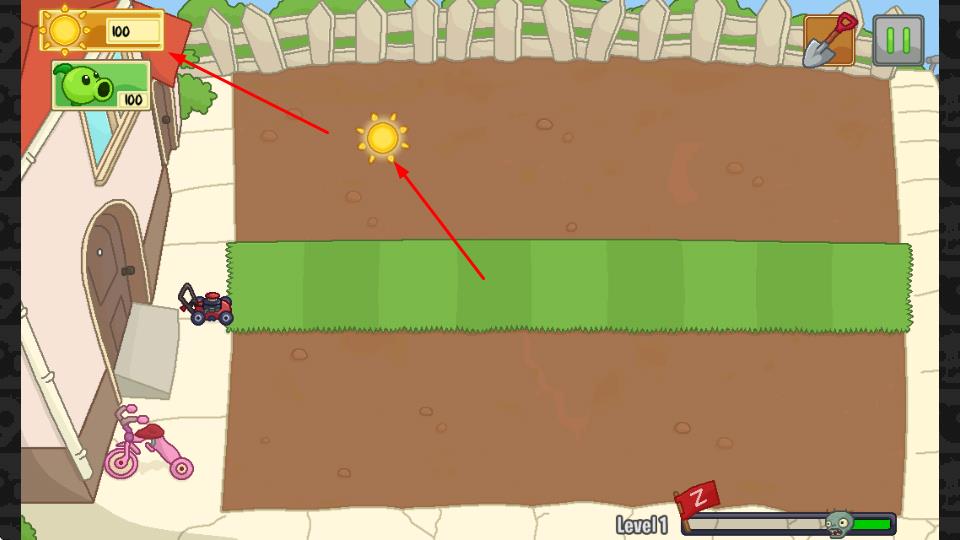 1、在游戲場(chǎng)景中收集陽(yáng)光,積累陽(yáng)光值,這是種植植物的關(guān)鍵資源,為后續(xù)布置防御奠定基礎(chǔ)。