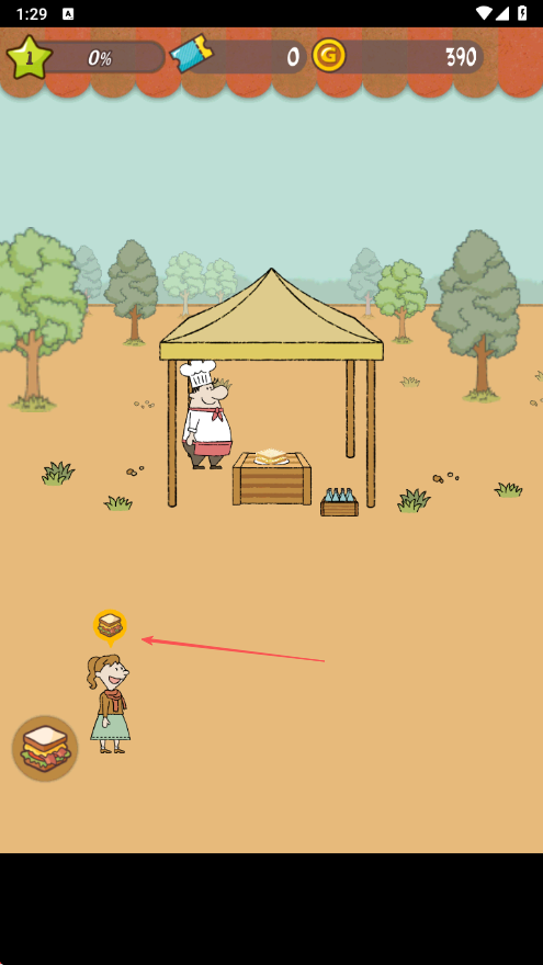 2、顧客靠近攤位時,點(diǎn)擊顧客,加快廚師為其服務(wù)的速度,獲取金幣,留意上方金幣數(shù)量變化。