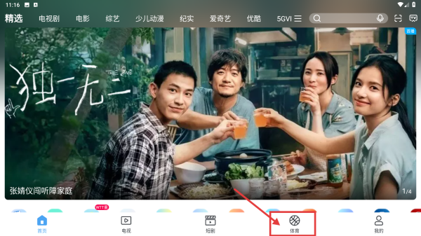 1、打開視頻應用,點擊底部體育選項,進入體育內(nèi)容頁面。