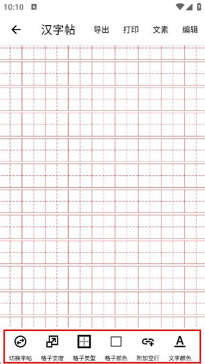 3、在漢字帖編輯頁面,可通過底部功能按鈕,設(shè)置字帖樣式。