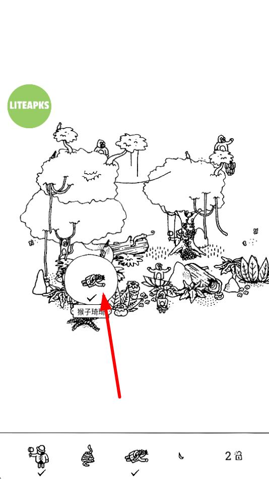 2、找到猴子騎騎目標(biāo),通過點(diǎn)擊標(biāo)記完成識(shí)別,找物操作考驗(yàn)玩家的觀察力,每找到一個(gè)目標(biāo)可推進(jìn)游戲進(jìn)度。