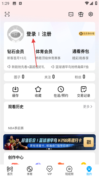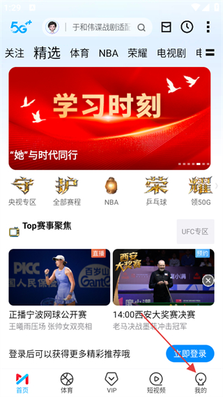 1、進入咪咕視頻首頁,點擊底部我的,進入個人頁面。