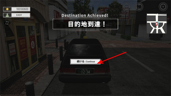 3、確認(rèn)任務(wù)完成,到達(dá)目的地后,點擊Continue按鈕,確認(rèn)任務(wù)完成,獲取獎勵并繼續(xù)游戲。