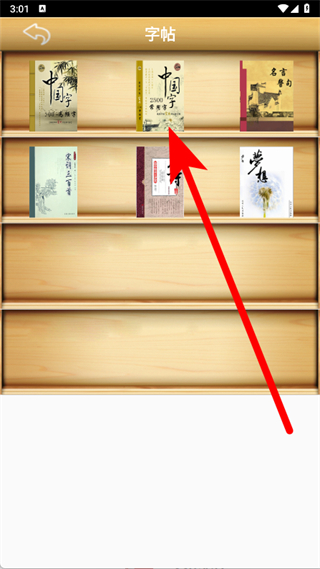 2、在字帖選擇界面,點(diǎn)擊想要練習(xí)的字帖,進(jìn)入該字帖的內(nèi)容頁面。