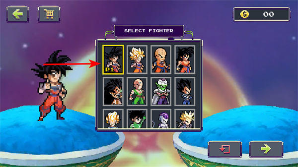 1、在角色選擇界面,點擊孫悟空的頭像,可選擇該角色參與戰(zhàn)斗,他擁有多樣戰(zhàn)斗技能,在對戰(zhàn)中取得優(yōu)勢。