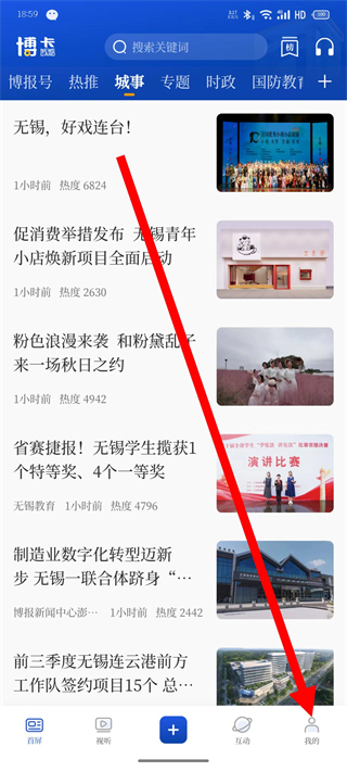 1、打開無錫博報,點擊頁面底部的我的,進入個人頁面。