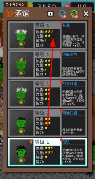 2、酒館中招募選擇不同技能的獸人,根據(jù)需求搭配隊(duì)伍,利用技能優(yōu)勢(shì),提升戰(zhàn)斗和經(jīng)營(yíng)效率。