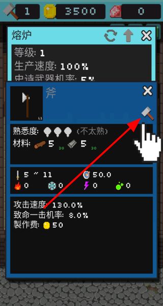 4、打造武器選擇材料和武器類(lèi)型,提升武器熟悉度,熔爐中打造強(qiáng)力裝備,進(jìn)行運(yùn)營(yíng)售賣(mài)。