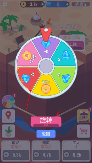 4、參與轉(zhuǎn)盤(pán)活動(dòng),有機(jī)會(huì)獲得金幣、鉆石等獎(jiǎng)勵(lì),加速游戲進(jìn)程。