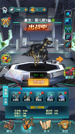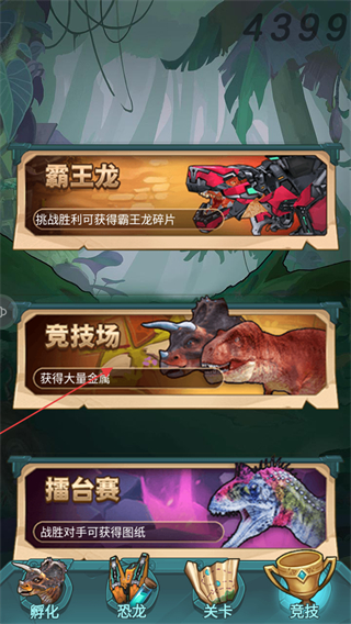 設(shè)計(jì)了豐富的關(guān)卡內(nèi)容,每個(gè)關(guān)卡都有明確的目標(biāo)和獨(dú)特的挑戰(zhàn)難度,既能孵化新恐龍豐富陣容,也能為現(xiàn)有恐龍配備裝備,激勵(lì)玩家不斷挑戰(zhàn)更高難度關(guān)卡。