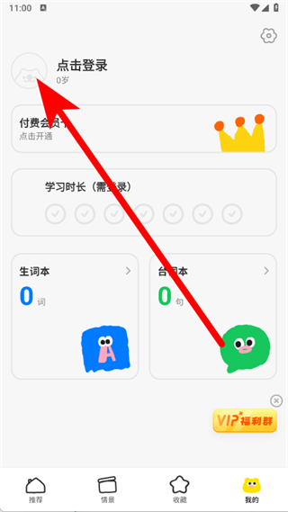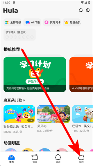 1、打開(kāi)呼啦少兒英語(yǔ),點(diǎn)擊底部導(dǎo)航欄的我的,進(jìn)入個(gè)人中心頁(yè)面。