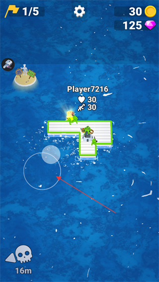 3、操控木筏移動(dòng),擴(kuò)大領(lǐng)地,積累金幣和鉆石,升級(jí)武器與木筏。