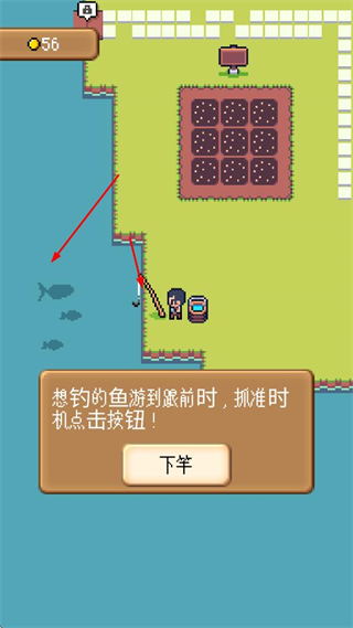 3、在水域旁進(jìn)行釣魚,抓準(zhǔn)時(shí)機(jī)點(diǎn)擊按鈕,獲取魚類資源。