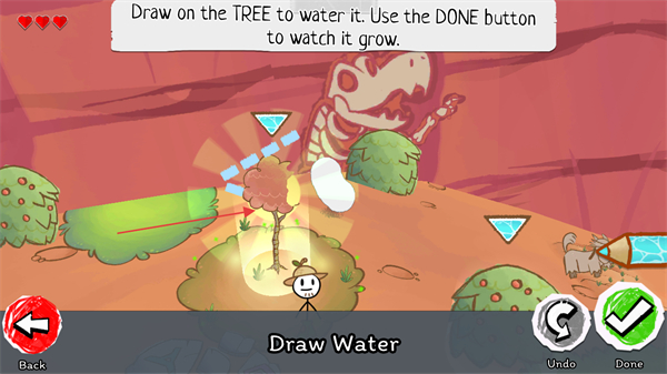 1、遇到發(fā)光的枯萎樹木或是植物,可以點擊右下角的畫筆,給樹木畫出雨水。