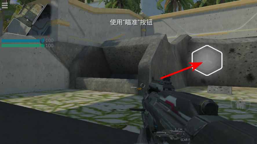 1、在射擊游戲中,點擊瞄準按鈕進入瞄準模式,瞄準模式可提升射擊精度,便于精準命中遠處目標。