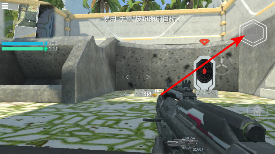 3、點擊手雷按鈕可投擲手雷命中目標,手雷具備范圍傷害效果,在面對集群敵人或掩體后的目標時使用。