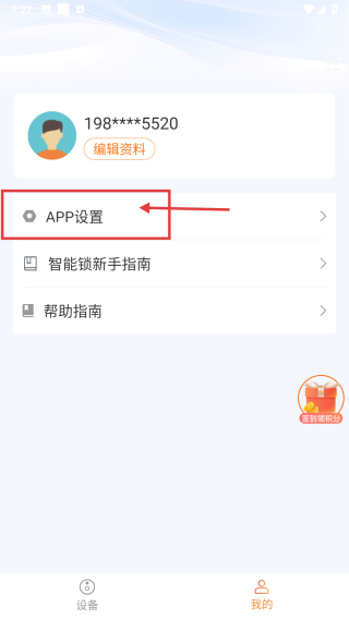 2、在個人中心,點擊APP設(shè)置選項,進入設(shè)置界面。