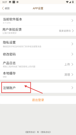 3、在設(shè)置界面,點擊注銷賬戶選項,進入注銷說明頁面。