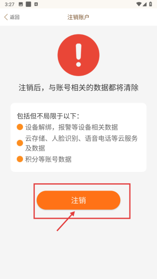4、在注銷說明頁面,點擊注銷按鈕,完成賬戶注銷操作。