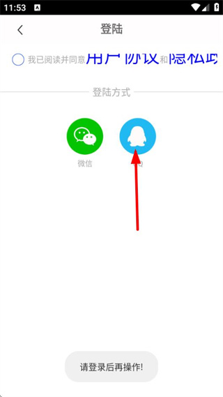 2、在登錄頁面選擇界面,選擇使用QQ登錄方式。