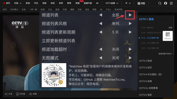 3、在設(shè)置界面,找到頻道列表選項(xiàng),點(diǎn)擊其右側(cè)的切換按鈕,展開頻道列表風(fēng)格選擇項(xiàng)。