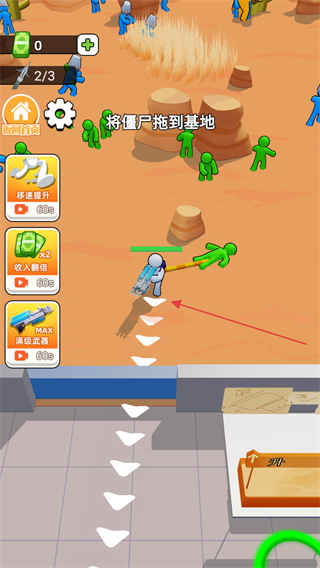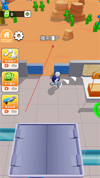2、前往沙漠區(qū)域獵殺僵尸,尋找綠色僵尸目標(biāo)。